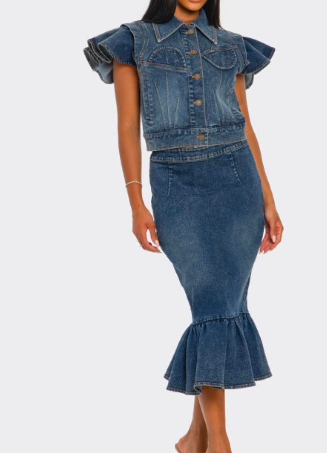• Load image into Gallery viewer, Denim Dreams Two Piece Skirt Set